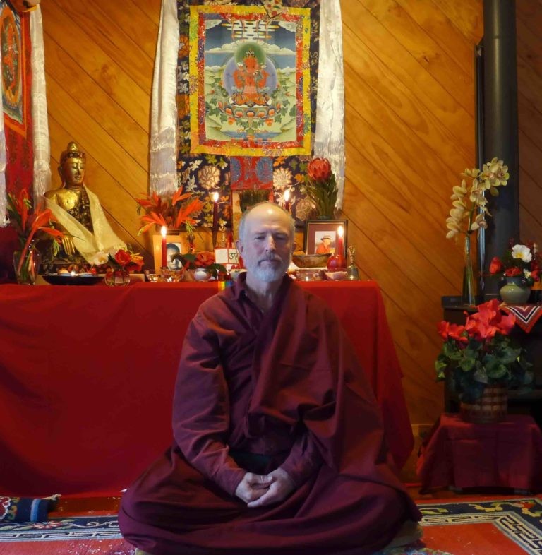 At the age of 20, in Toronto, he very briefly met the Bhikkhu Ananda Bodhi but then left Canada to hitch-hike, on his own, across North Africa and through the Middle East to India, where, after nine months of roaming on a proverbial shoe string, he developed a serious case of hepatitis coupled with various strains of amoebic dysentery. After returning to Canada and regaining his health, he reconnected with Ananda Bodhi and with the excitement of feeling he had discovered something fundamentally meaningful to do with his life. For much of the next 7 years, he travelled all over the world, often on ocean-going cargo freighters, studying and retreating with the ‘Bhikkhu’ who later re-ordained and has been known since as Namgyal Rinpoché.